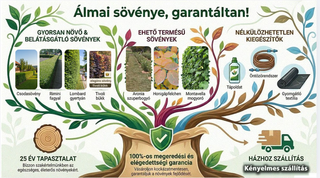 2 éves sövény, 1 éves áron + ajándék 1 éves csemete a biztos megeredésért!